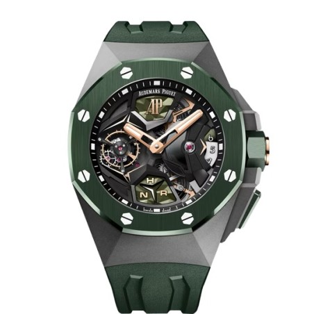 La Royal Oak Concept Tourbillon Volant GMT est l’une des créations les plus techniques d’Audemars Piguet : un boîtier sculptural au design futuriste, un tourbillon volant conçu pour une précision extrême, et une fonction GMT permettant d’afficher un second fuseau horaire. Fabriquée en titane ou en forgé carbone selon les versions, elle combine légèreté, robustesse et haute horlogerie. Son architecture ouverte laisse apparaître la mécanique interne, soulignant un mouvement entièrement assemblé à la main. Ultra exclusive, elle incarne le sommet de la performance horlogère moderne.